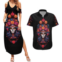 Day of Dead Skull Couples Matching Summer Maxi Dress and Hawaiian Shirt Sugar Skull Festival Lady DT01