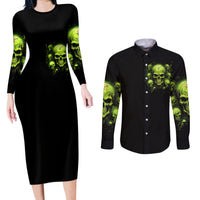 Thunder Skull Couples Matching Long Sleeve Bodycon Dress and Long Sleeve Button Shirts Thunder Skull I Never Alone My Demon With Me 24/7 DT01