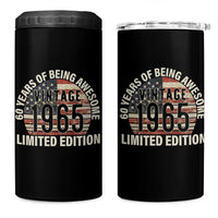 60th Birthday 4 in 1 Can Cooler Tumbler Vintage 1965 Limited Edition 60 Years Of Being Awesome American Flag