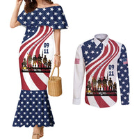 911 Memorial Couples Matching Mermaid Dress and Long Sleeve Button Shirt Patriot Day American Flag and Soldier Silhouette Honor and Remember TS04