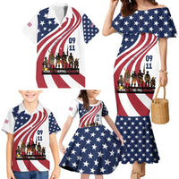 911 Memorial Family Matching Mermaid Dress and Hawaiian Shirt Patriot Day American Flag and Soldier Silhouette Honor and Remember TS04