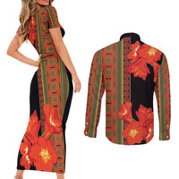 Africa Beauty Clivia Miniata Flowers Couples Matching Short Sleeve Bodycon Dress and Long Sleeve Button Shirt LT9