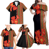 Africa Beauty Clivia Miniata Flowers Family Matching Off Shoulder Maxi Dress and Hawaiian Shirt