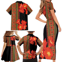 Africa Beauty Clivia Miniata Flowers Family Matching Short Sleeve Bodycon Dress and Hawaiian Shirt