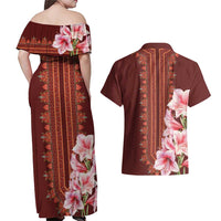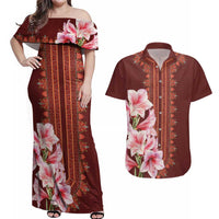 Africa Dashiki Couples Matching Off Shoulder Maxi Dress and Hawaiian Shirt With Belladonna Lily