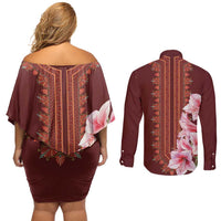 Africa Dashiki Couples Matching Off Shoulder Short Dress and Long Sleeve Button Shirt With Belladonna Lily