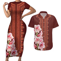 Africa Dashiki Couples Matching Short Sleeve Bodycon Dress and Hawaiian Shirt With Belladonna Lily