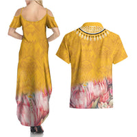 Africa Dashiki Couples Matching Summer Maxi Dress and Hawaiian Shirt King Protea Floral Motif Patterns LT18