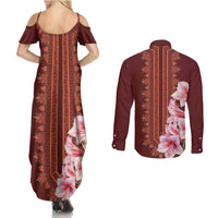 Africa Dashiki Couples Matching Summer Maxi Dress and Long Sleeve Button Shirt With Belladonna Lily