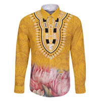 Africa Dashiki Family Matching Tank Maxi Dress and Hawaiian Shirt King Protea Floral Motif Patterns LT18