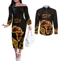 Africa Day Personalized Couples Matching Off The Shoulder Long Sleeve Dress and Long Sleeve Button Shirt Ethnic Retro Style
