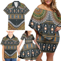 Africa Ethnic Native Pattern Family Matching Off Shoulder Short Dress and Hawaiian Shirt