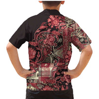Africa Floral mix Maasai Shuka Family Matching Mermaid Dress and Hawaiian Shirt Red Moitf