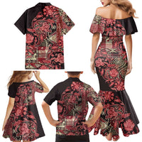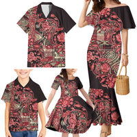 Africa Floral mix Maasai Shuka Family Matching Mermaid Dress and Hawaiian Shirt Red Moitf LT9