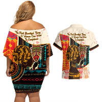 Africa International Women Day Couples Matching Off Shoulder Short Dress and Hawaiian Shirt African Pattern LT14