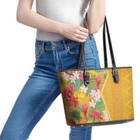 Africa Tropical Flowers Leather Tote Bag Yellow Version
