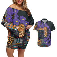 Africa Violets Flowers Couples Matching Off Shoulder Short Dress and Hawaiian Shirt Mix Native Tribal Pattern