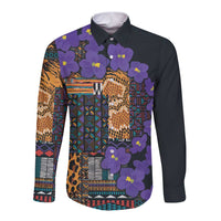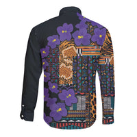 Africa Violets Flowers Long Sleeve Button Shirt Mix Native Tribal Pattern