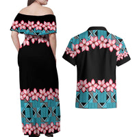 African Adenium Multiflorum Flowers Couples Matching Off Shoulder Maxi Dress and Hawaiian Shirt with Kente Style