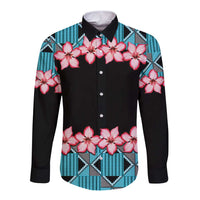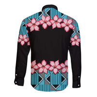 African Adenium Multiflorum Flowers Long Sleeve Button Shirt with Kente Style