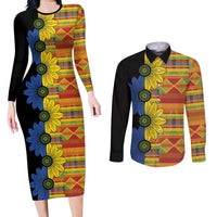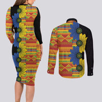 African Ethnic Kitenge Ankara Style Couples Matching Long Sleeve Bodycon Dress and Long Sleeve Button Shirt