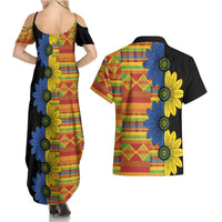 African Ethnic Kitenge Ankara Style Couples Matching Summer Maxi Dress and Hawaiian Shirt