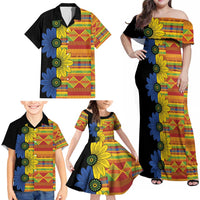 African Ethnic Kitenge Ankara Style Family Matching Off Shoulder Maxi Dress and Hawaiian Shirt