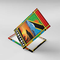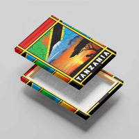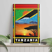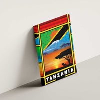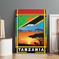 African Sunset Design Canvas Wall Art with Flag Map Mount Kilimanjaro and Wildlife Scene