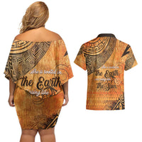 African Women Couples Matching Off Shoulder Short Dress and Hawaiian Shirt She Is Rooted In The Earth and Rising Like The Sun LT15