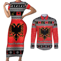 Albania Christmas Couples Matching Short Sleeve Bodycon Dress and Long Sleeve Button Shirt Albanian Eagle Gezuar Krishtlindja