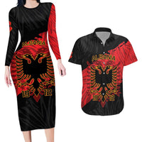 Albania Independence Day Couples Matching Long Sleeve Bodycon Dress and Hawaiian Shirt Albanian Eagle - Grunge Style