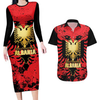 Albania Independence Day Couples Matching Long Sleeve Bodycon Dress and Hawaiian Shirt Dita e Pavaresise Map Grunge Style