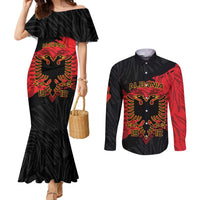 Albania Independence Day Couples Matching Mermaid Dress and Long Sleeve Button Shirt Albanian Eagle - Grunge Style LT15
