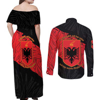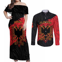 Albania Independence Day Couples Matching Off Shoulder Maxi Dress and Long Sleeve Button Shirt Albanian Eagle - Grunge Style
