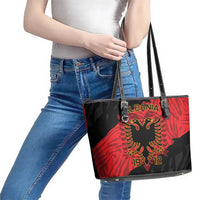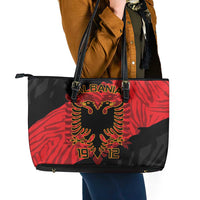 Albania Independence Day Leather Tote Bag Albanian Eagle - Grunge Style LT15