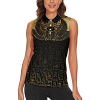 Ancient Egypt Scarab Women Sleeveless Polo Shirt Black Gold LT7