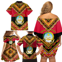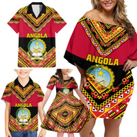 Angola Independence Day Family Matching Off Shoulder Short Dress and Hawaiian Shirt Coat Of Arms Samakaka Pattern