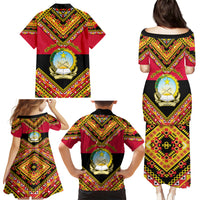 Angola Independence Day Family Matching Puletasi Dress and Hawaiian Shirt Coat Of Arms Samakaka Pattern