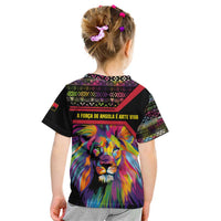 Angola Kid T Shirt with Multicolor Tribal Design and Vibrant Lion
