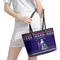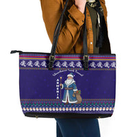 Armenia Christmas Leather Tote Bag with Santa Claus Shnorhavor Surb Tsnund and Gift Bag Pattern