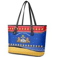 Armenia Christmas Leather Tote Bag with Shnorhavor Surb Tsnund Lions Flag Colors and Coat of Arms