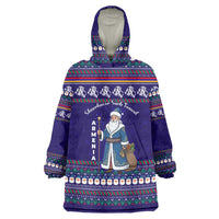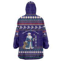 Armenia Christmas Wearable Blanket Hoodie with Santa Claus Shnorhavor Surb Tsnund and Gift Bag Pattern