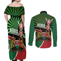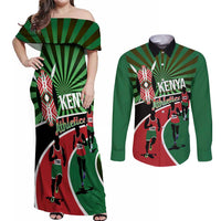 Athletics Kenya Couples Matching Off Shoulder Maxi Dress and Long Sleeve Button Shirt Maasai Shield Running Way