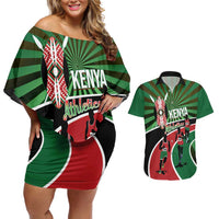 Athletics Kenya Couples Matching Off Shoulder Short Dress and Hawaiian Shirt Maasai Shield Running Way