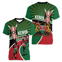 Athletics Kenya Women V-Neck T-Shirt Maasai Shield Running Way LT14