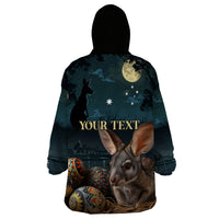 Australia Easter 2024 Wearable Blanket Hoodie Bunny With Aboriginal Eggs At Starry Night LT01