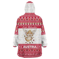 Austria Christmas Wearable Blanket Hoodie with Frohe Weihnachten Angel Design and Red White Holiday