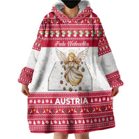 Austria Christmas Wearable Blanket Hoodie with Frohe Weihnachten Angel Design and Red White Holiday TS04