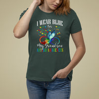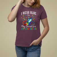 Autism Grandparents T Shirt For Women I Wear Blue For My Grandson Grandma Grandpa Rainbow Infinity with Feather Butterfly