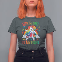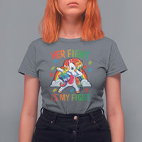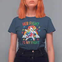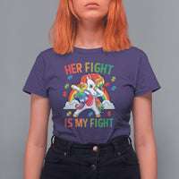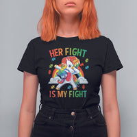 Autism Support T Shirt For Women Her Fight Is My Fight Cute Dabbing Unicorn Rainbow
